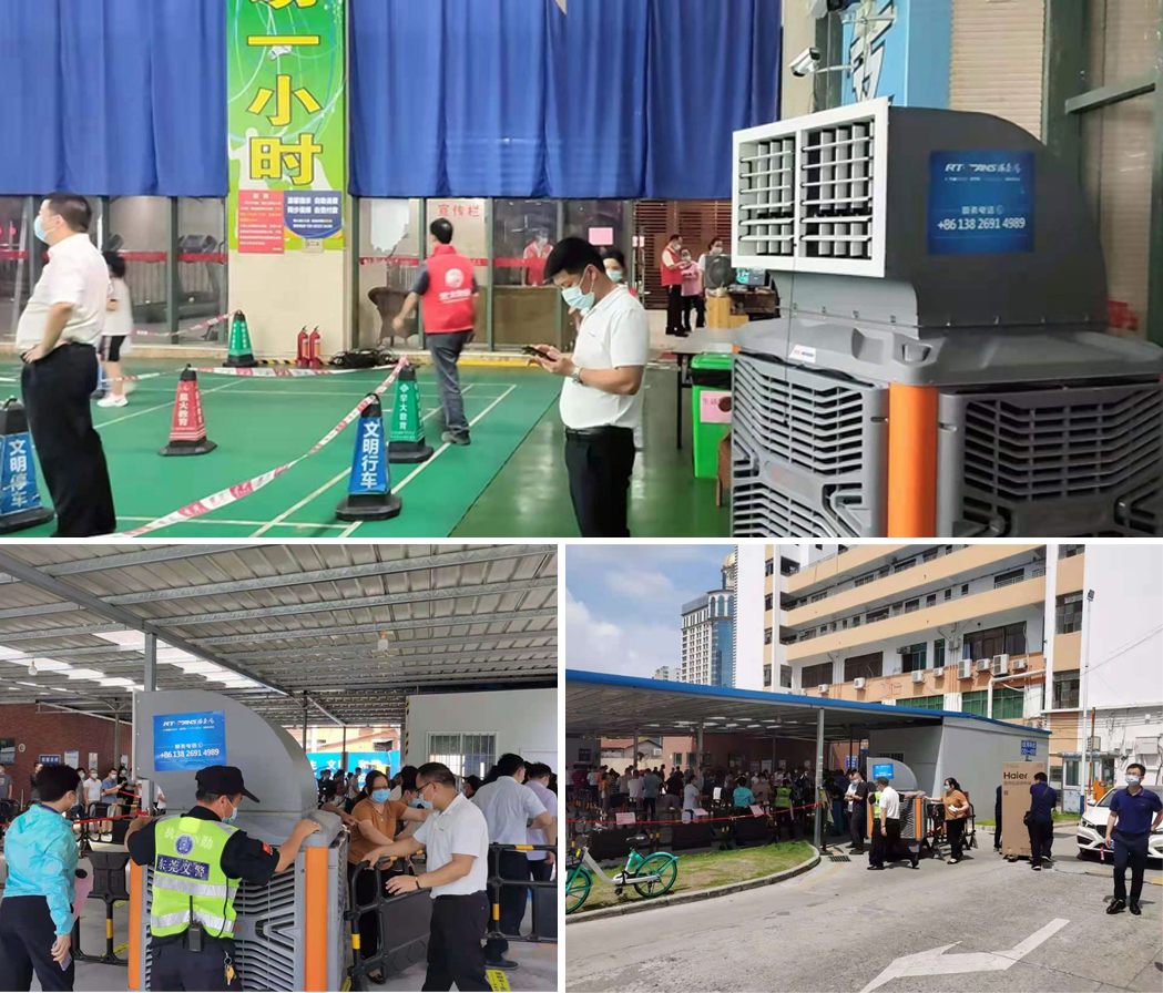 (瑞泰風移動式冷風機在疫情接種點使用中)